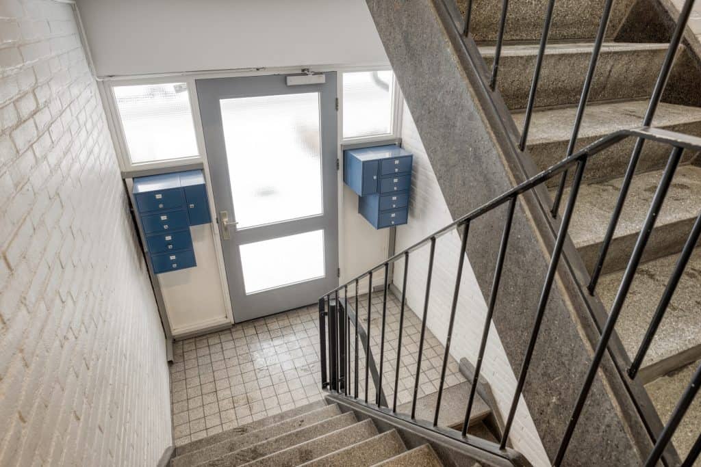 Indeling: Via de afgesloten portiek met intercominstallatie betreed je het appartementencomplex. We nemen de trap naar de tweede verdieping. Vanuit de hal zijn de diverse vertrekken bereikbaar, waaronder het toilet, de meterkast, de keuken, twee slaapkamers en de woonkamer.