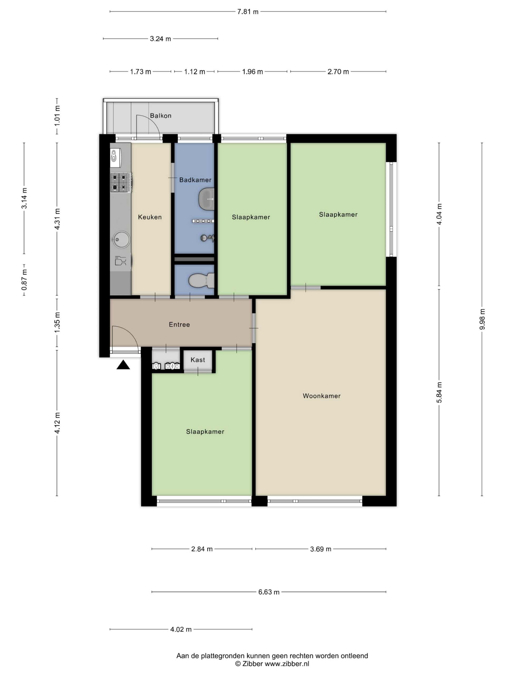 De keuken is praktisch ingedeeld, uitgerust met diverse inbouwapparaten en geeft toegang tot het balkon aan de achterzijde. De badkamer is ook vanuit de keuken toegankelijk en is voorzien van een douche en een wastafel.
