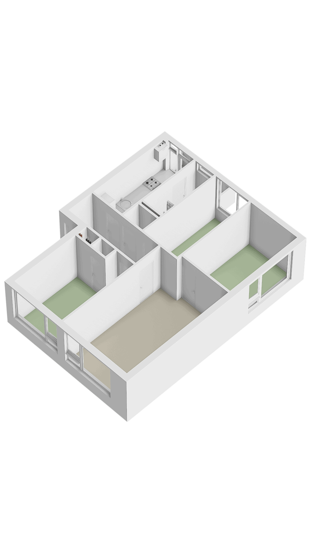 De andere twee slaapkamers zijn vanuit de hal toegankelijk.