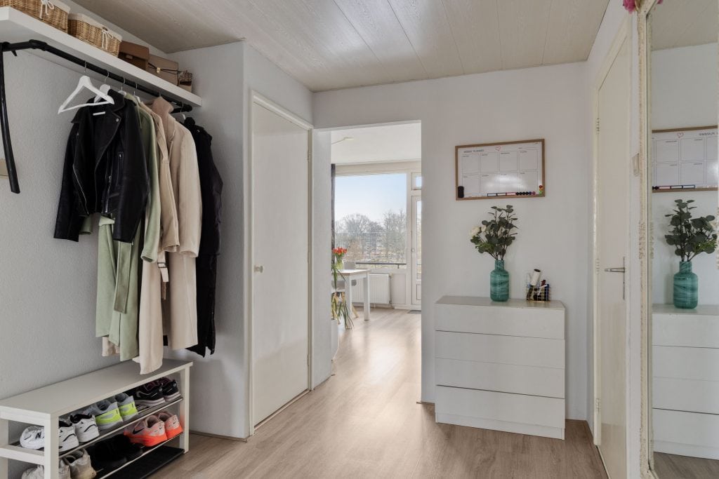 Via de afgesloten entree kom je het complex binnen. In het appartement valt direct de praktische indeling op. Vanuit de hal zijn alle vertrekken bereikbaar.