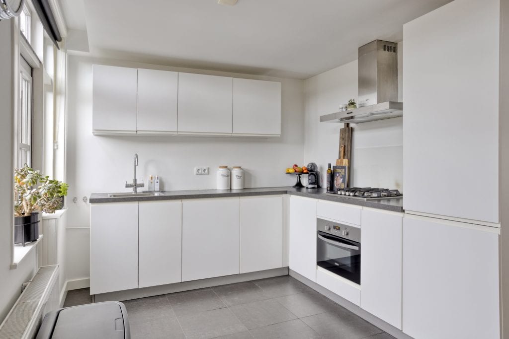 De ruime open keuken ziet er keurig uit en is voorzien van een hoekkeukenblok in een moderne kleurstelling. Het keukenblok is voorzien van alle inbouwapparatuur die je nodig hebt. Via een deur kun je ook hier de tuin in.