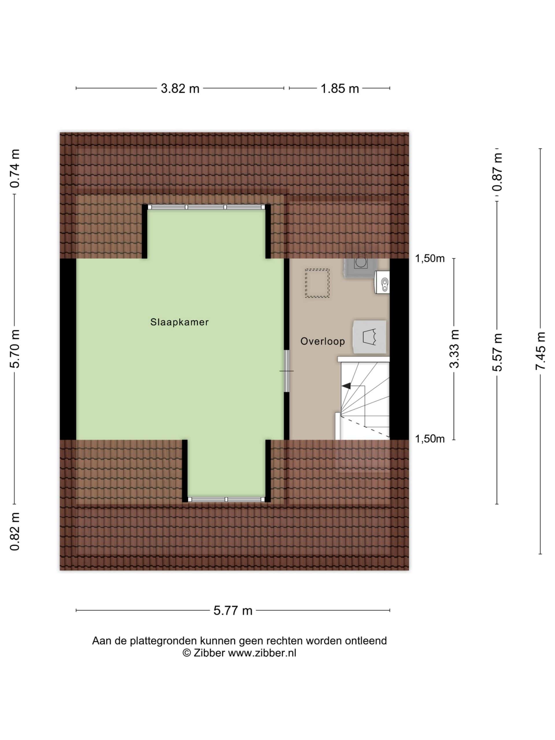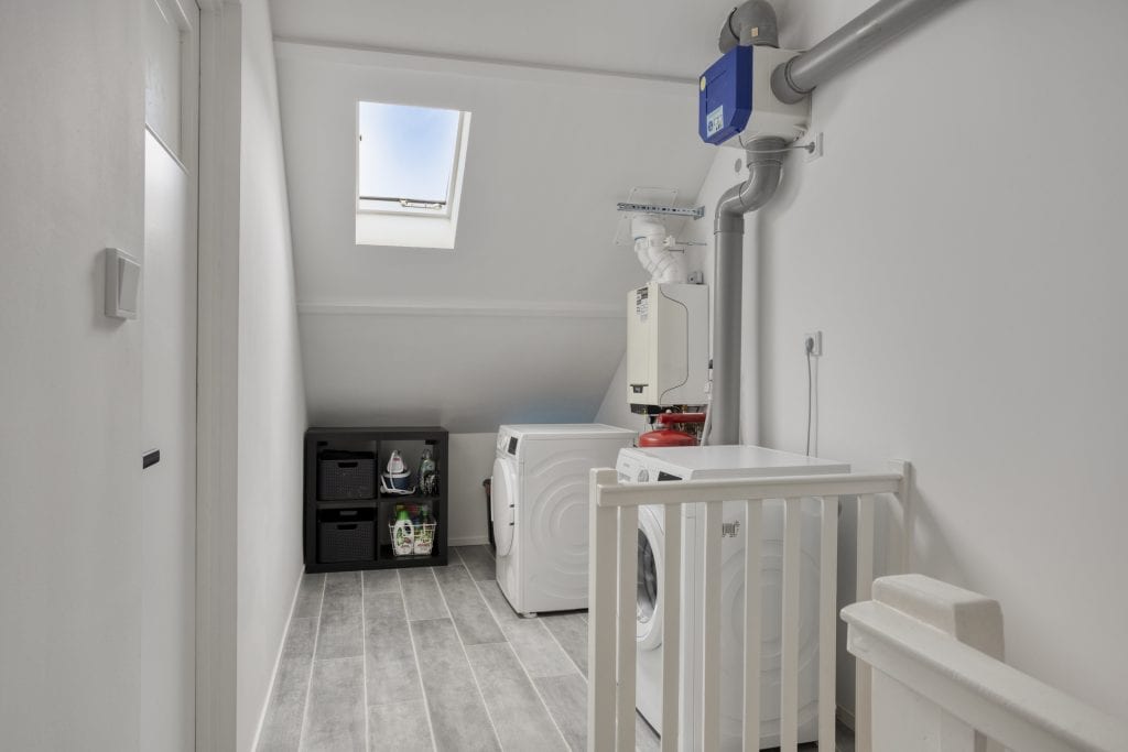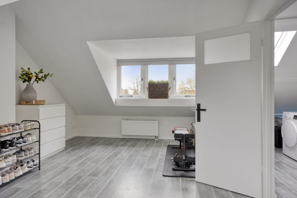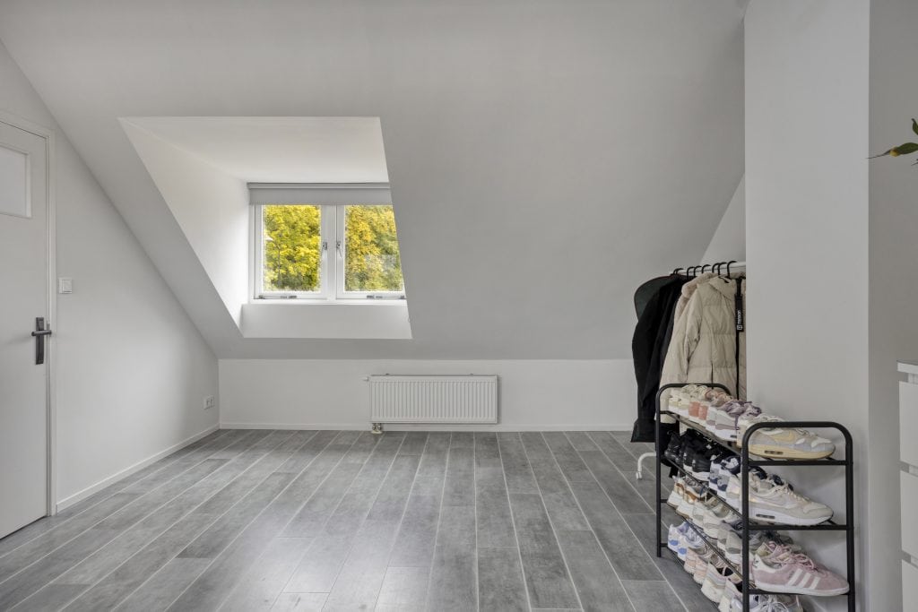 Via een vaste trap kom je op de voorzolder van de 2e verdieping. Je vindt hier de aansluiting voor je wasapparatuur. Verder vind je op deze verdieping een heerlijk ruime zolderkamer met een dakkapel aan de voor- en achterzijde. Indien gewenst kun je hier eenvoudig twee kamers realiseren.