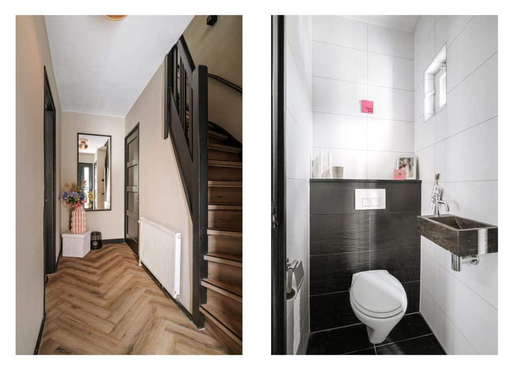 Bij binnenkomst kom je in een ruime hal met meterkast, modern toilet en toegang tot de praktische kelder, ideaal voor extra opslag.