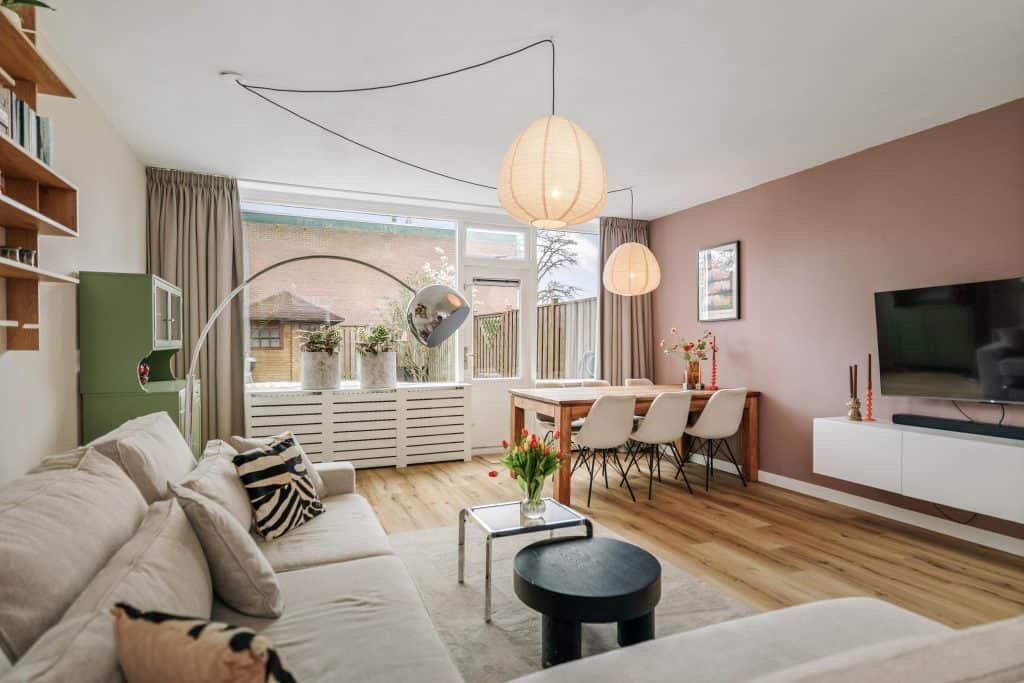 De woning is de afgelopen periode gemoderniseerd en dat is direct zichtbaar. De wanden zijn strak gestuukt, er is gekozen voor moderne kleurstellingen en de afwerking is verzorgd en eigentijds.