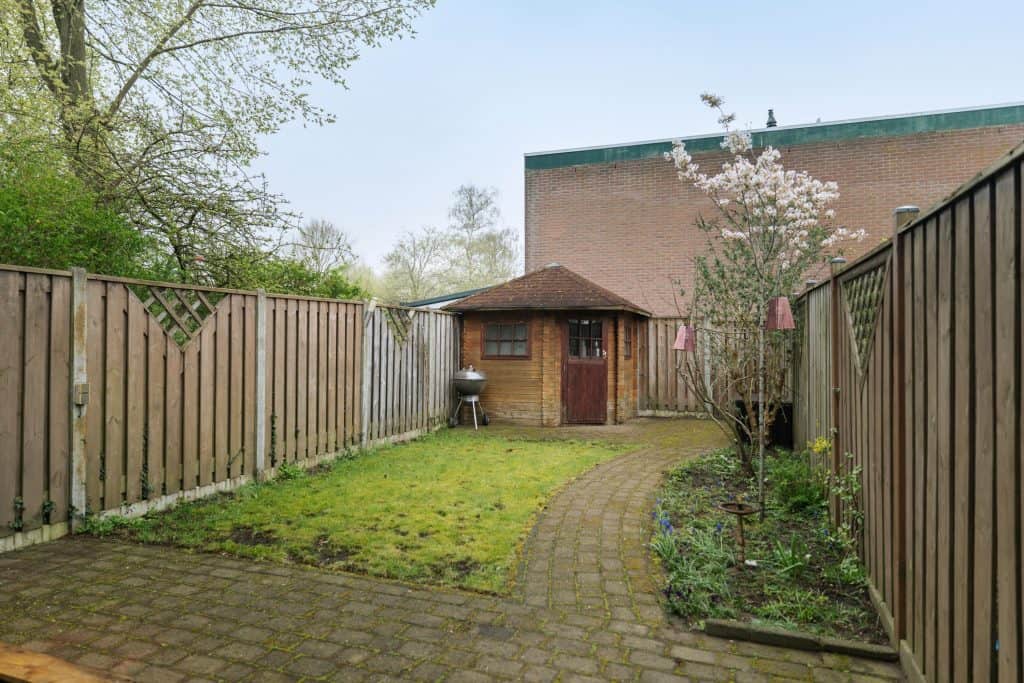 Buiten: De tuin is een fijne plek om te verblijven en biedt door de hoekligging extra privacy. Aan de zijkant zit je vrij, wat het buitenleven hier extra aangenaam maakt.