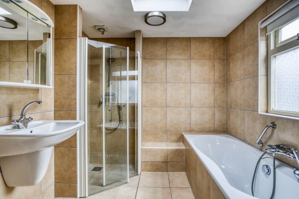 In het verleden is ook de eerste verdieping deels uitgebouwd. Hier is een ruime badkamer gerealiseerd. De keurige badkamer is geheel betegeld en voorzien van een douche, een wastafel, een ligbad en een toilet.