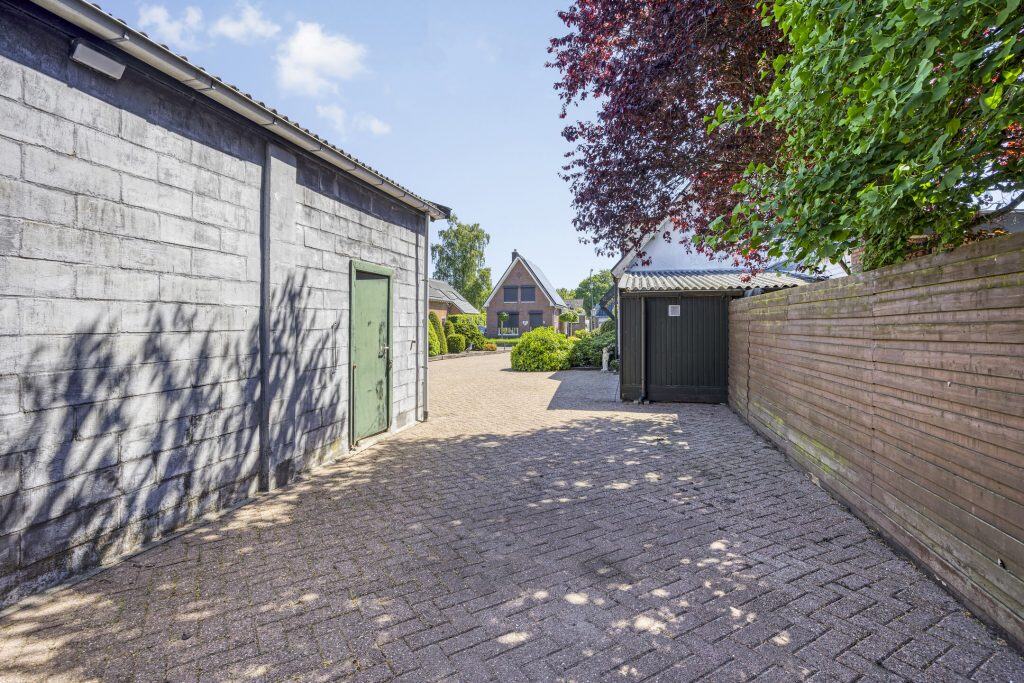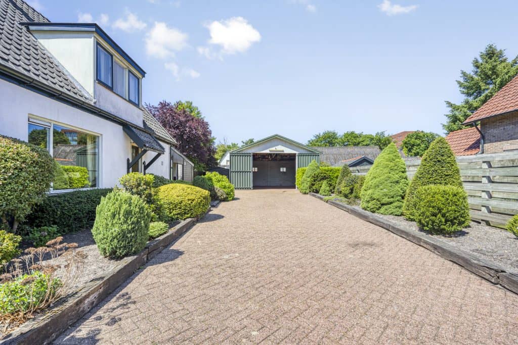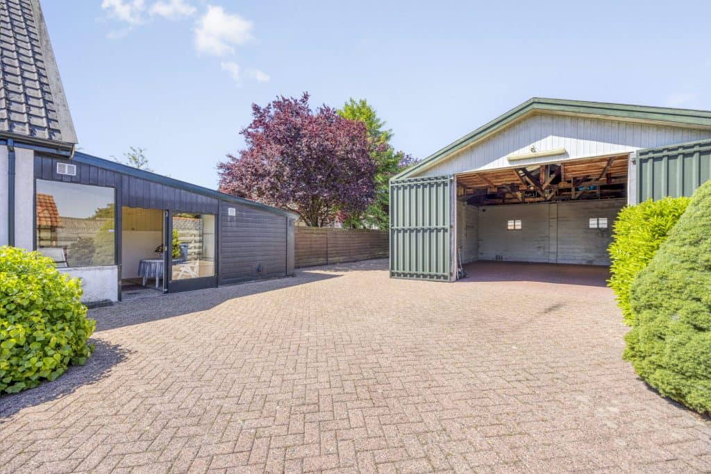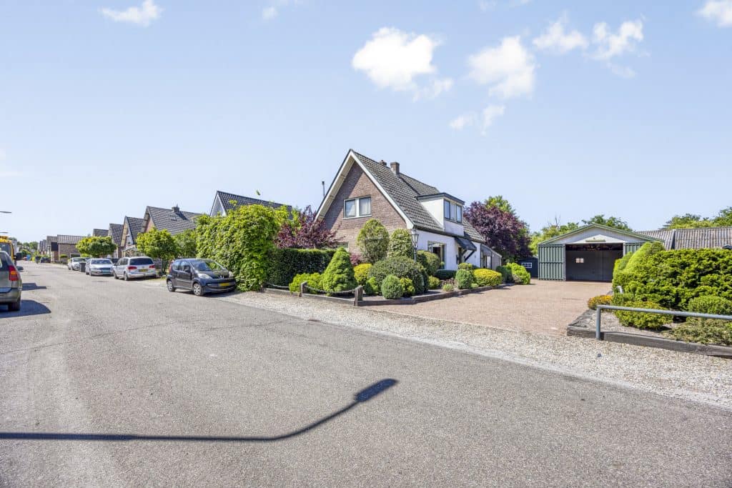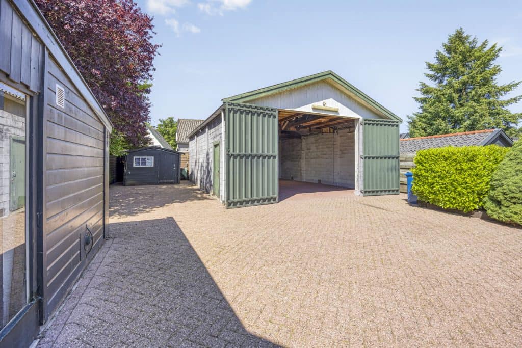 Buiten: de woning ligt op een royaal perceel van maar liefst 515 m². De tuin is op het westen gesitueerd, er is een ruime oprit, er zijn borders, een houten tuinhuisje en een hele grote garage/loods (9,72 x 7,22 m²). De garage heeft een goede hoogte en heeft dubbele deuren aan de voorzijde. Ideaal voor een klusser, als je opslagruimte nodig hebt, werken aan huis of als je graag je caravan(s) of camper(s) droog wil stallen!