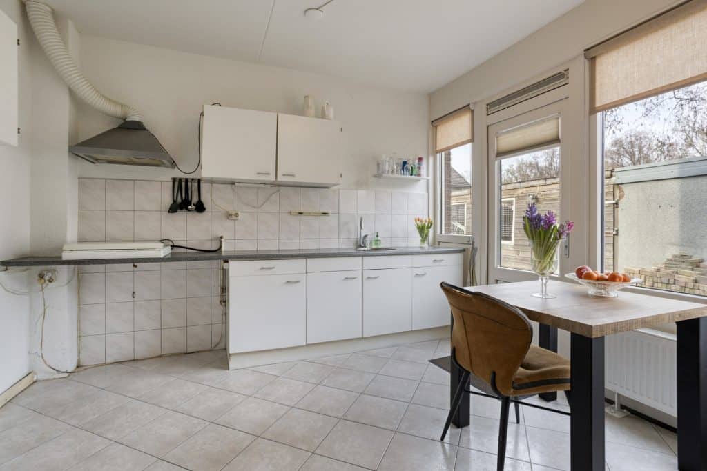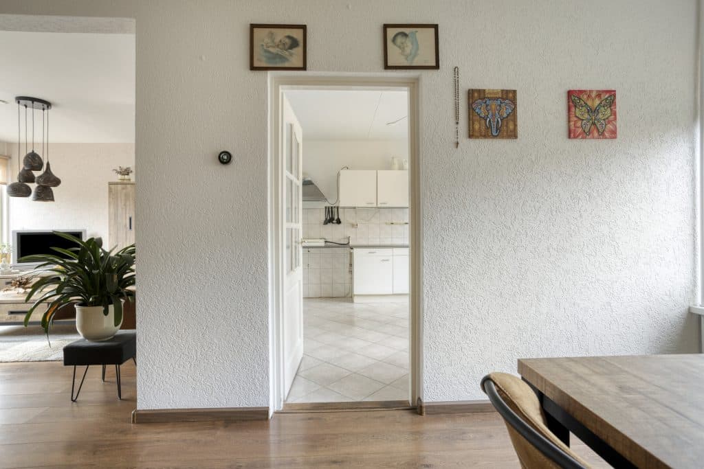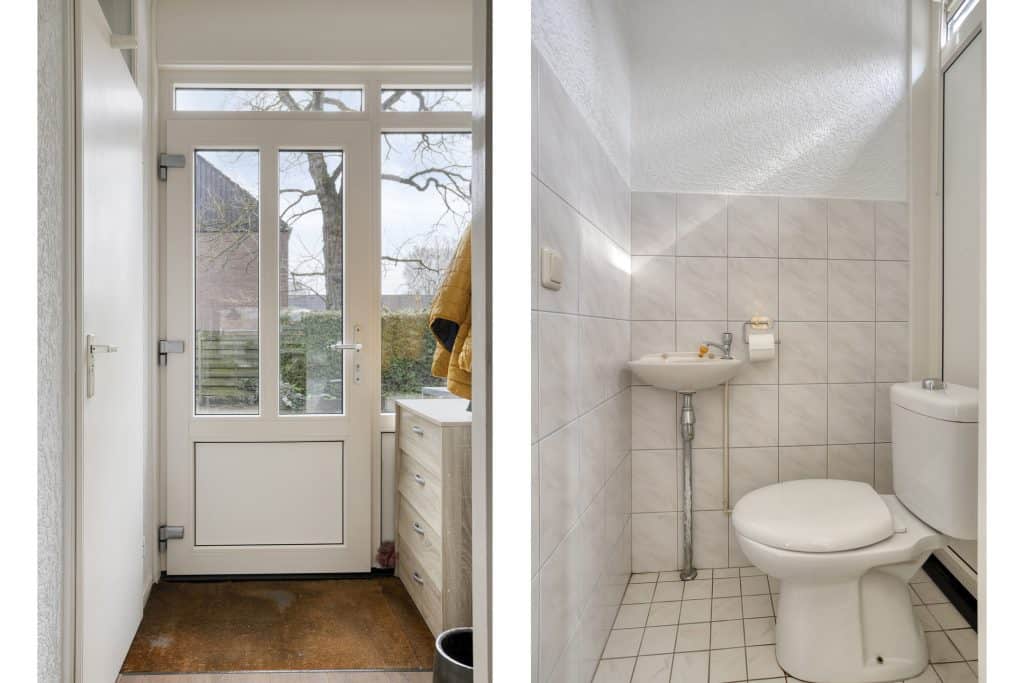 Door de woning heen: Bij binnenkomst in de hal bevinden zich de meterkast en het toilet. Vanuit hier is de woonkamer bereikbaar, die speels is ingedeeld en prettig lichtinval heeft. Aan de voorzijde geniet u van een vrij uitzicht. Aan de achterzijde is er voldoende ruimte voor een eettafel. De keuken is eenvoudig uitgevoerd, maar biedt volop mogelijkheden om een ruime en eigentijdse woonkeuken te realiseren.