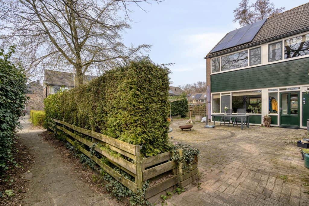 Buiten: De woning beschikt over een royale kavel, mede dankzij de extra zijstrook die wordt gehuurd van de gemeente Apeldoorn. Dit zorgt voor extra buitenruimte en mogelijkheden.
