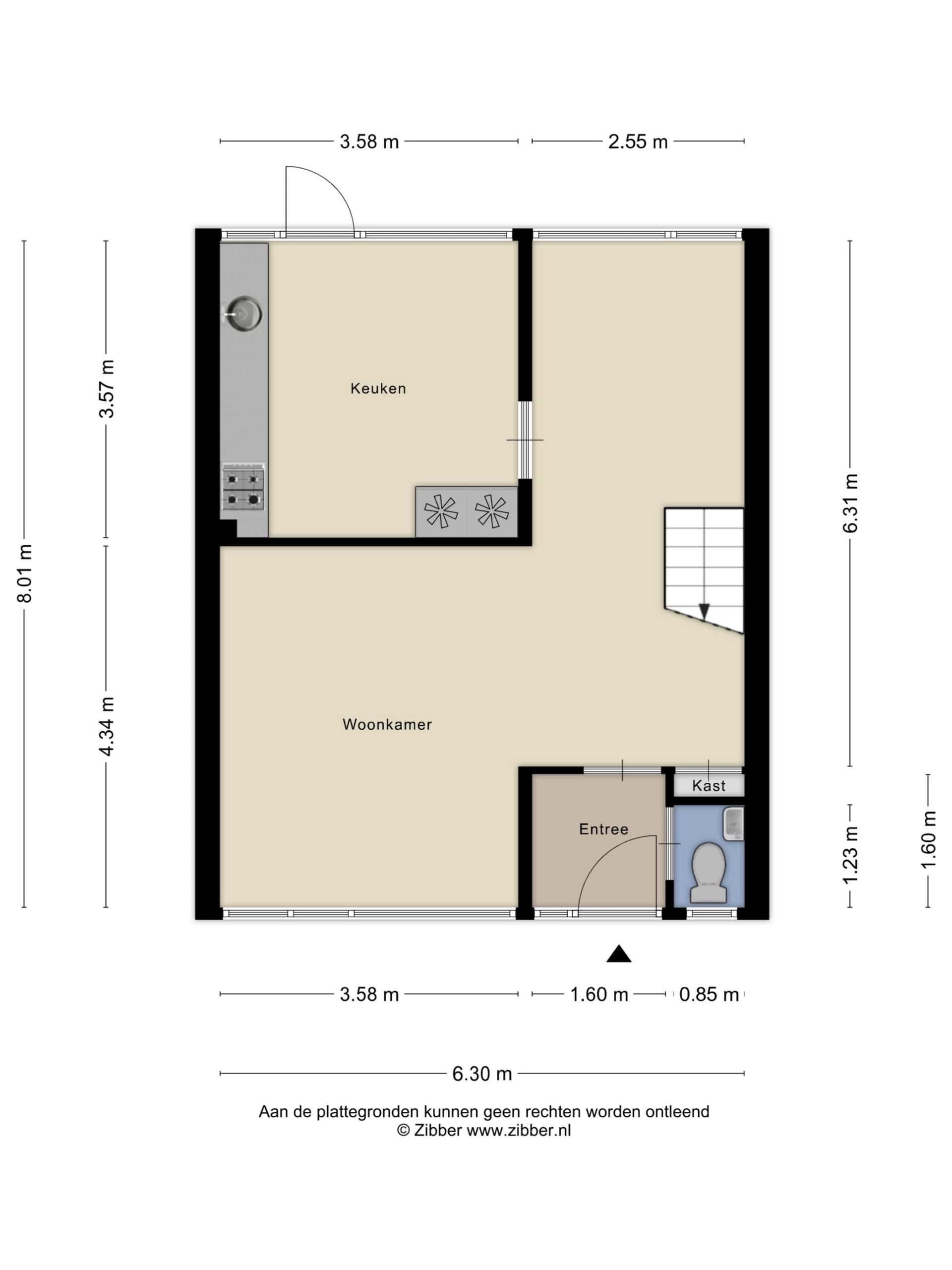 Door de woning heen: Bij binnenkomst in de hal bevinden zich de meterkast en het toilet. Vanuit hier is de woonkamer bereikbaar, die speels is ingedeeld en prettig lichtinval heeft. Aan de voorzijde geniet u van een vrij uitzicht. Aan de achterzijde is er voldoende ruimte voor een eettafel. De keuken is eenvoudig uitgevoerd, maar biedt volop mogelijkheden om een ruime en eigentijdse woonkeuken te realiseren.