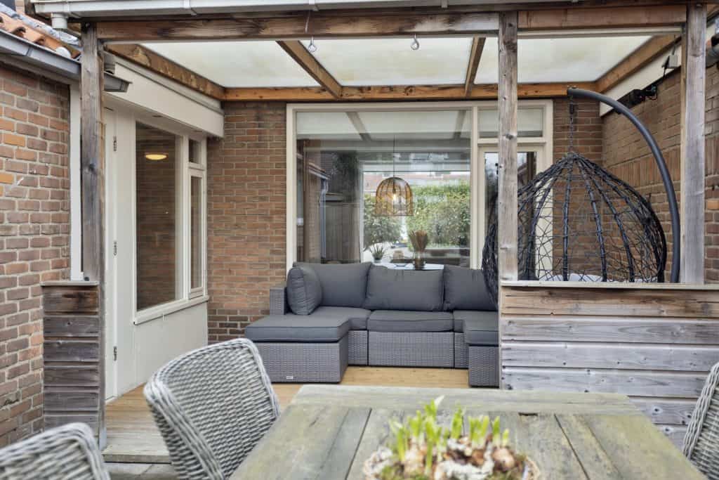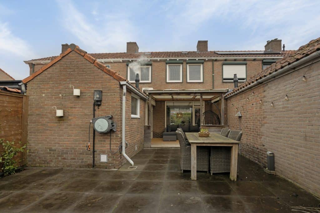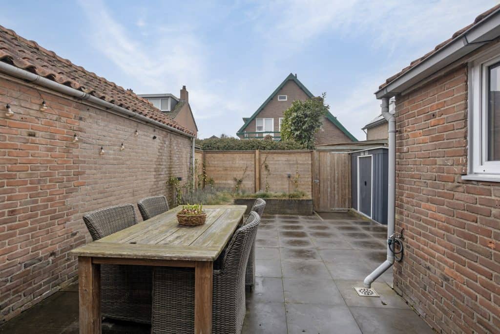 De tuin heeft een prima oppervlakte, is gelegen op de zonzijde en is net als de woning keurig verzorgd. De tuin is voorzien van sierstraatwerk, borders en leuk is ook het grote overdekte terras. Ook bij wat minder weer een fijne plek om van het buitenleven te genieten.