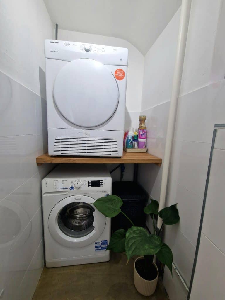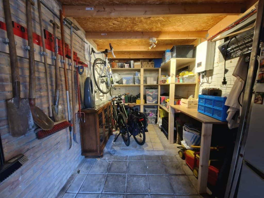 Er is een luik met een vlizotrap naar een ruime bergzolder.