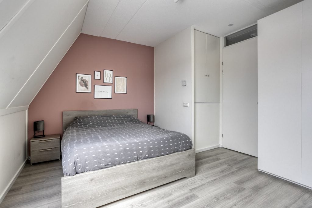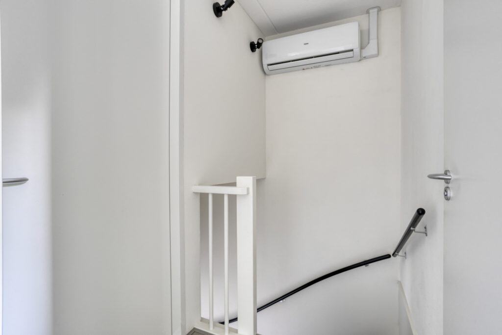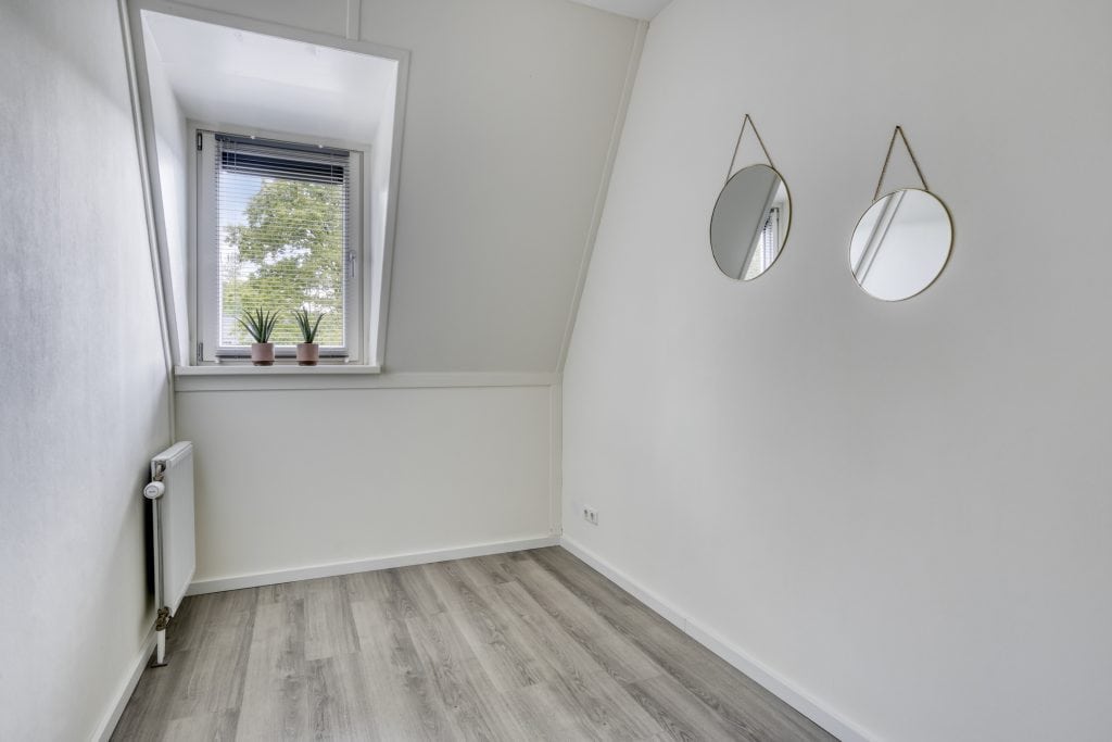 Via een mooie brede trap met verlichting kom je op de eerste verdieping. Hier vind je twee ruime en keurig afgewerkte slaapkamers. De slaapkamer aan de achterzijde is echt heel royaal en is voorzien van vaste kastruimte. De airco op deze verdieping zorgt voor een aangenaam binnenklimaat in het gehele huis, zowel in de zomer als winter.
