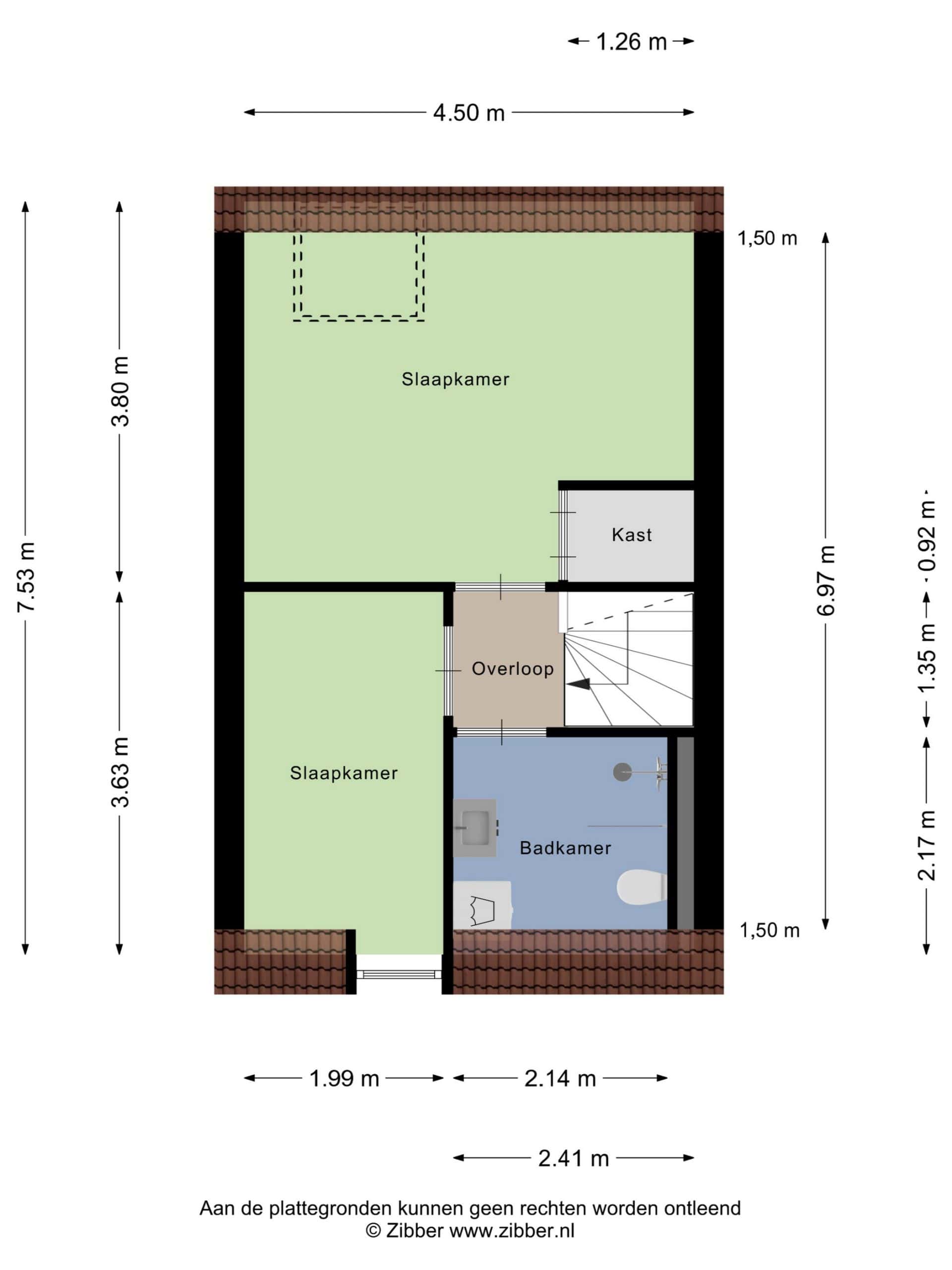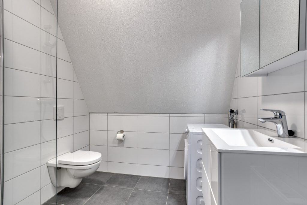 Tevens vind je op deze verdieping nog de badkamer. De badkamer is voorzien van een douchehoek, een 2e toilet, een wastafel en de aansluiting voor de wasmachine.