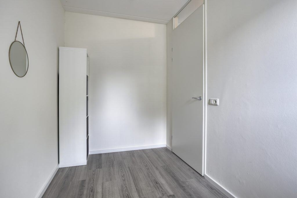 De achtertuin is netjes aangelegd en biedt een terras met elektrisch zonnescherm, een border met beplanting en een houten berging achterin de tuin. Aan de voorzijde van de woning is voldoende parkeergelegenheid en heb je vrij uitzicht.