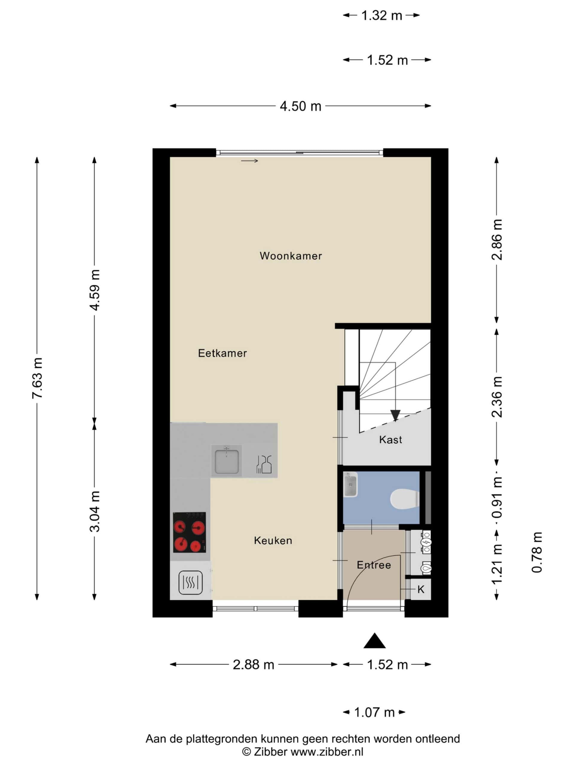 Door de woning heen: Via de voordeur kom je in de hal, waar zich het toilet, een garderobekast en de meterkast bevinden. Vanuit de hal loop je door naar de keuken. De moderne keuken bevindt zich aan de voorzijde van de woning, is in L-vorm opgesteld, uitgevoerd in een lichte kleurstelling en is voorzien van alle inbouwapparatuur die je nodig hebt. Vanuit de keuken is ook de grote trapkast toegankelijk. De woning is op de begane grond voorzien van een mooie plavuizen vloer met vloerverwarming.