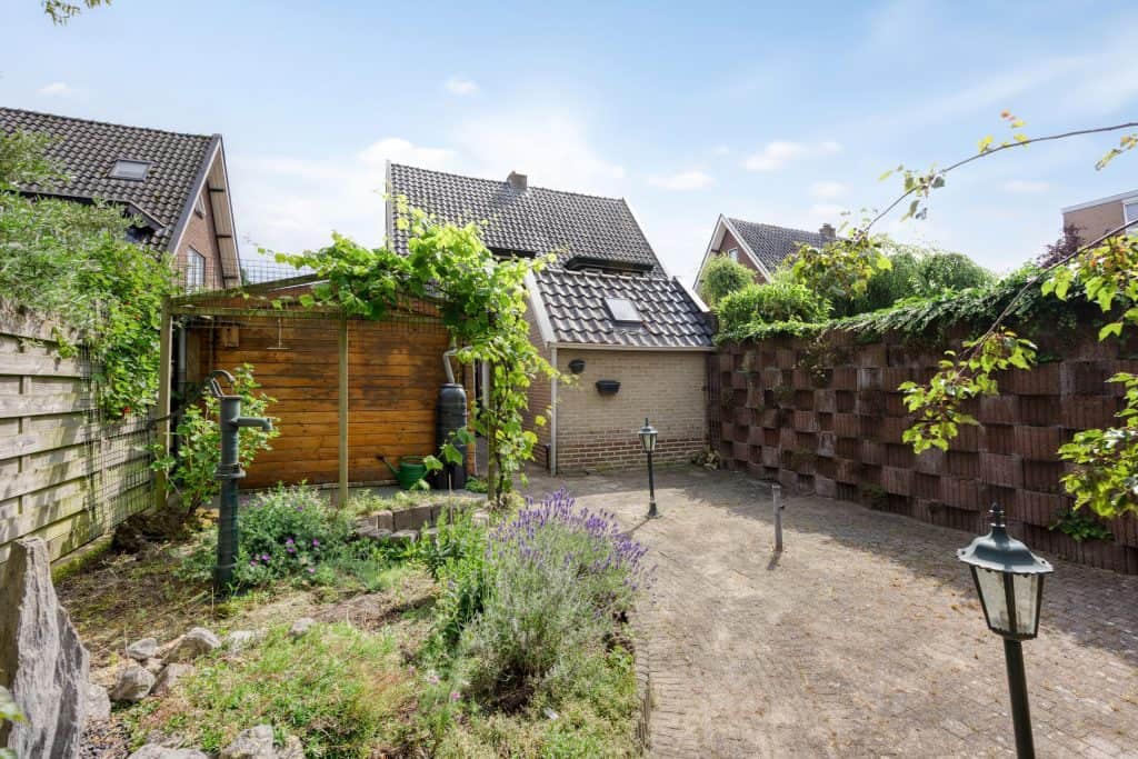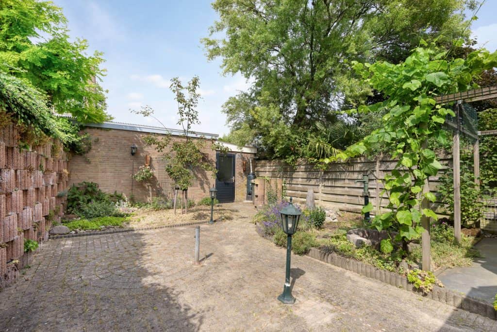 De oppervlakte van de keurig aangelegde tuin is groot genoeg om heerlijk van het buitenleven te kunnen genieten. Verder vind je naast de woning een houten tuinberging en achterin de tuin een ruime stenen berging