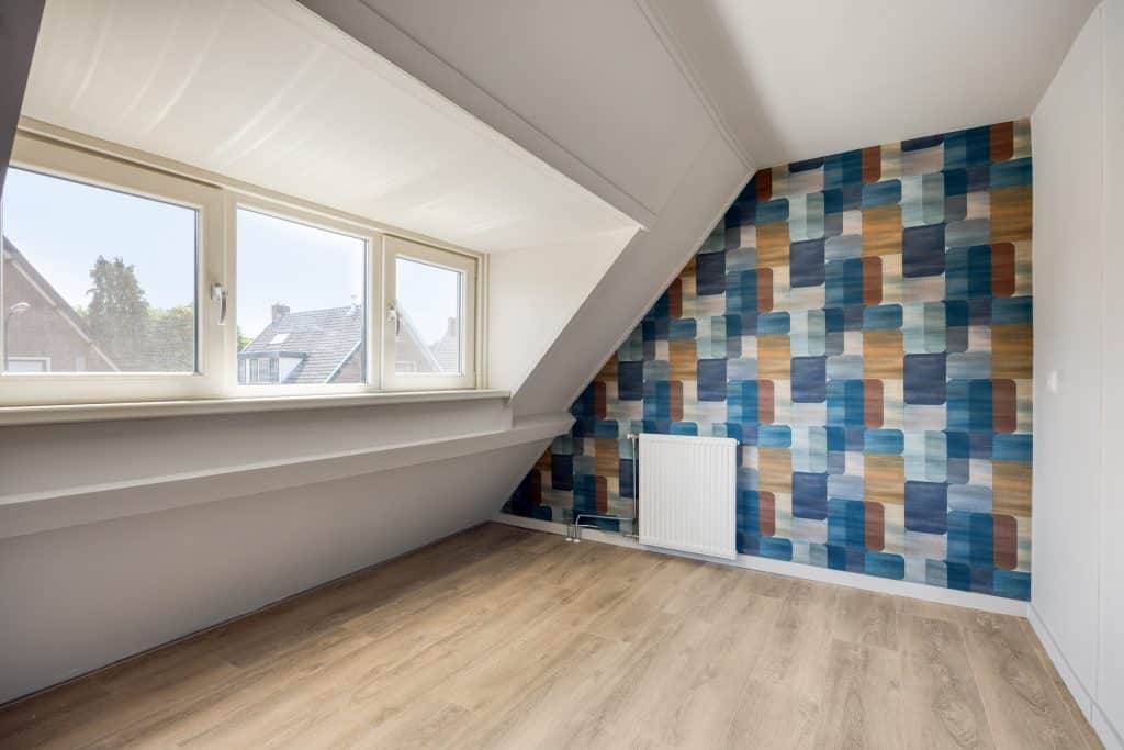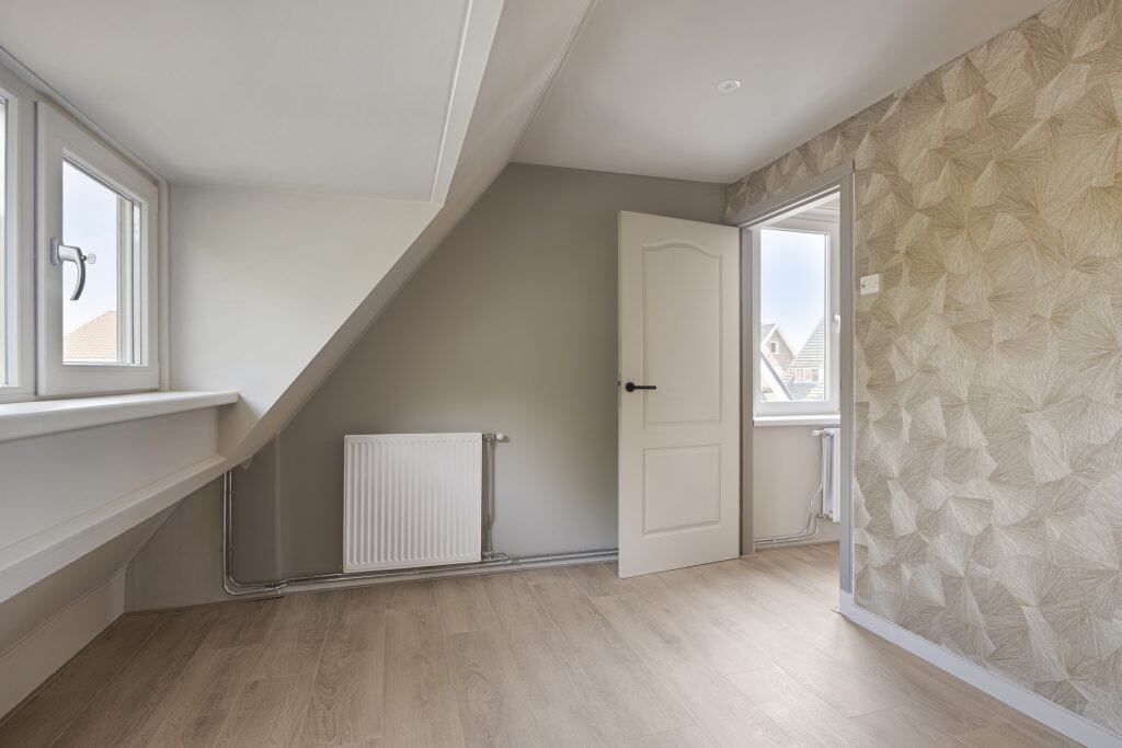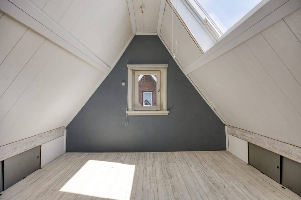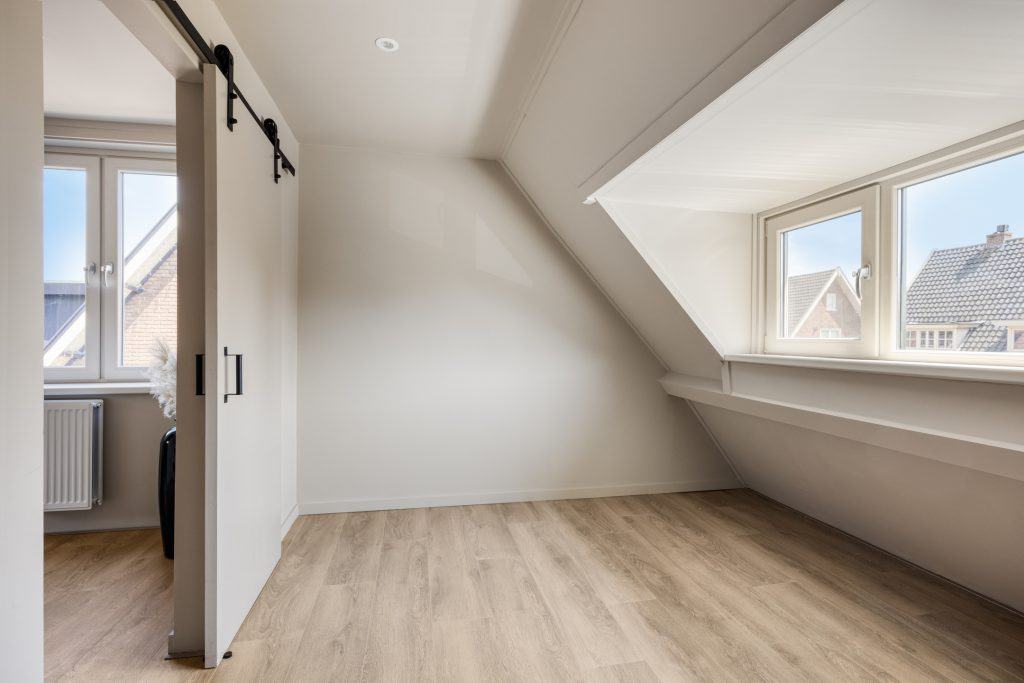 Via een vaste trap op de overloop kom je terecht op de 2e verdieping. Hier vind je een ruime 3e slaapkamer met een zijraam en dakraam voor de lichtinval.