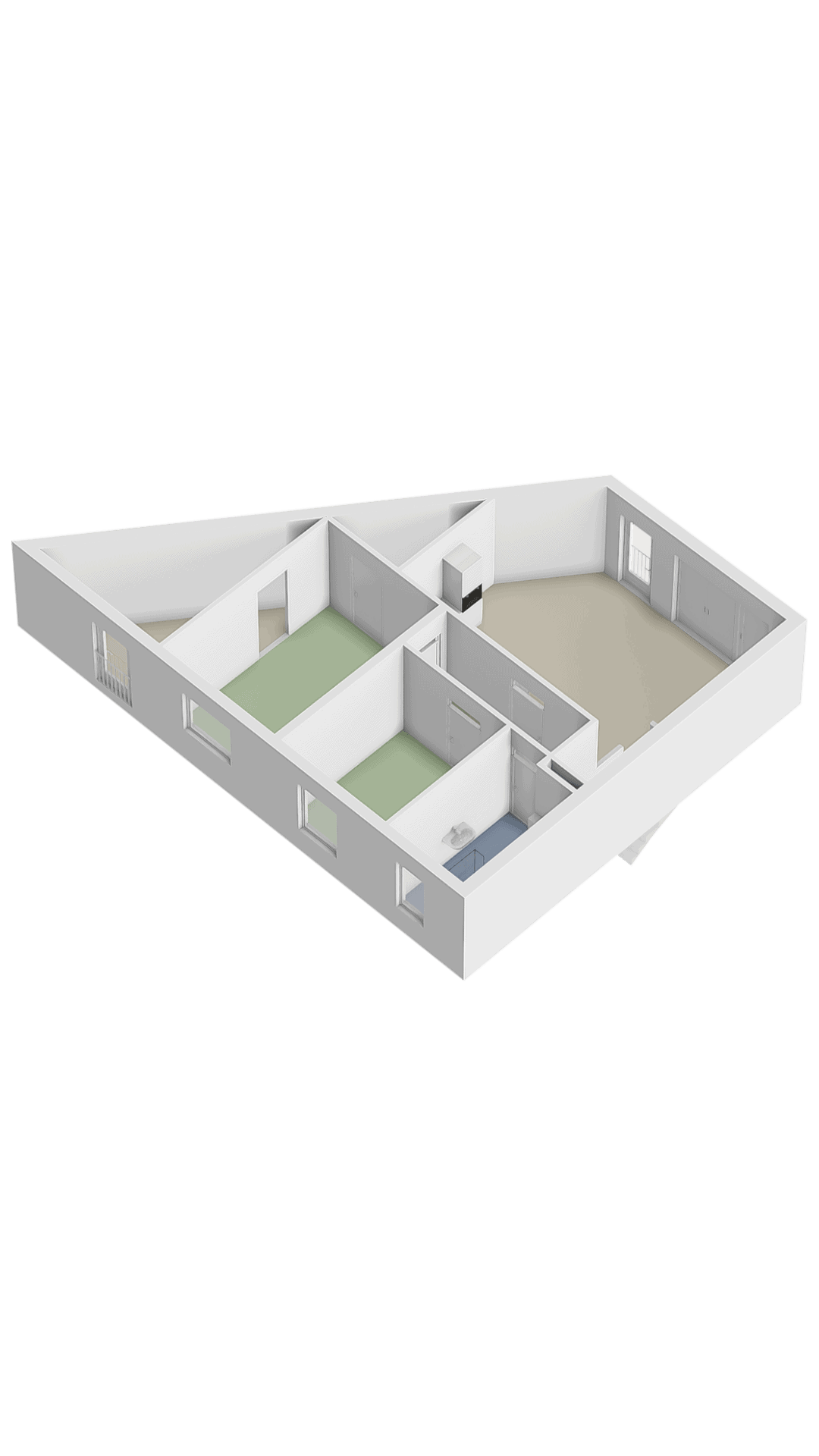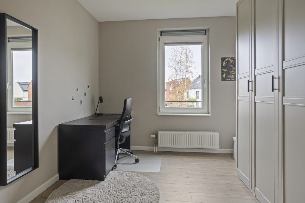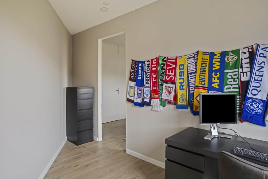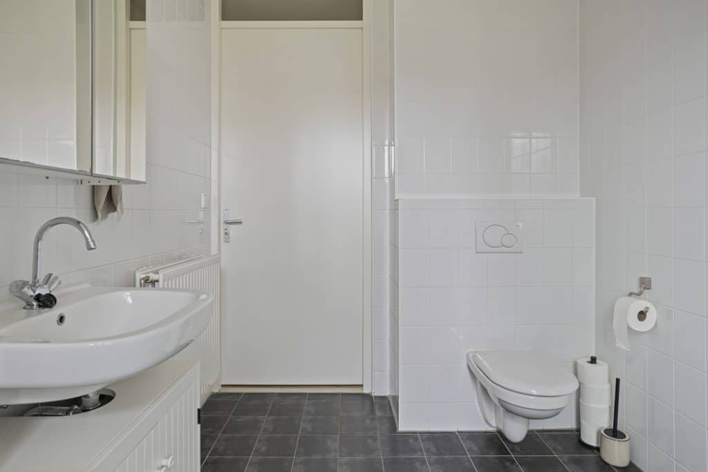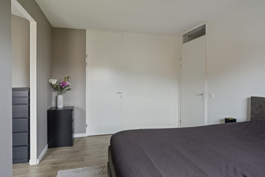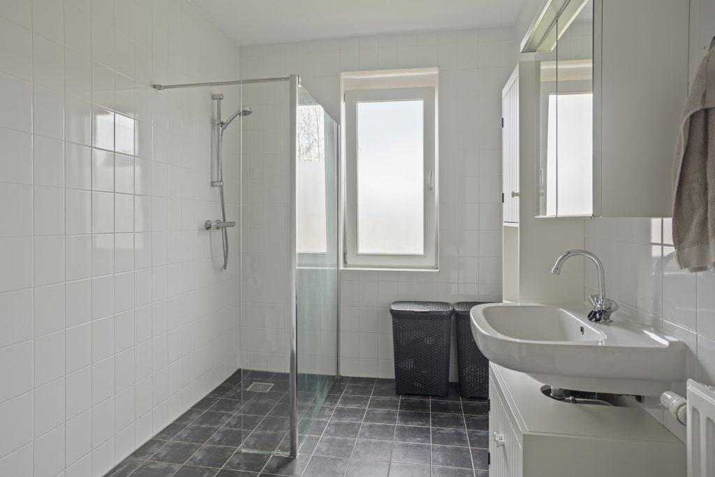 Via een binnenhal zijn twee ruime slaapkamers en de badkamer toegankelijk. Vanuit een van de slaapkamers zijn nog een berging en een derde slaapkamer toegankelijk. De badkamer ziet er keurig uit, is ruim opgezet en is voorzien van een toilet, een inloopdouche en een wastafel.