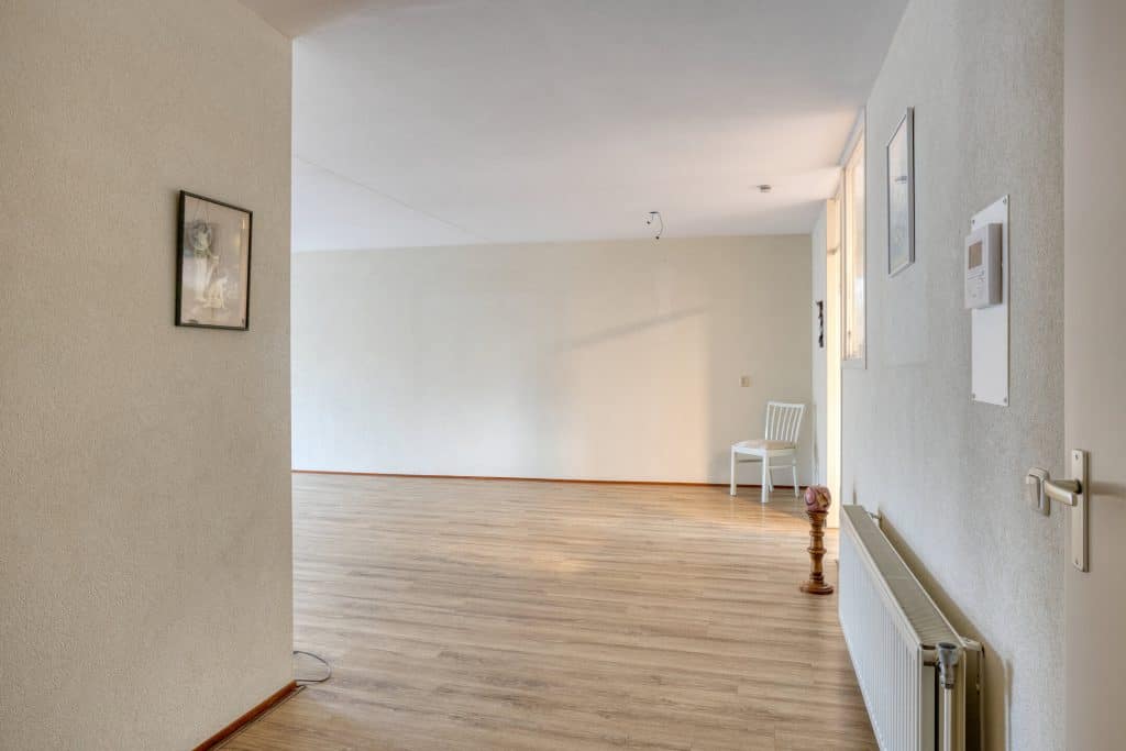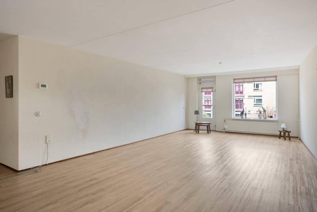 Via de voordeur kom je binnen in de ruime hal. Vanuit hier loop je door naar de ruime woonkamer, gelegen aan de voorzijde van het appartement. Deze woonkamer is ontzettend ruim en is voorzien van een Frans balkon.