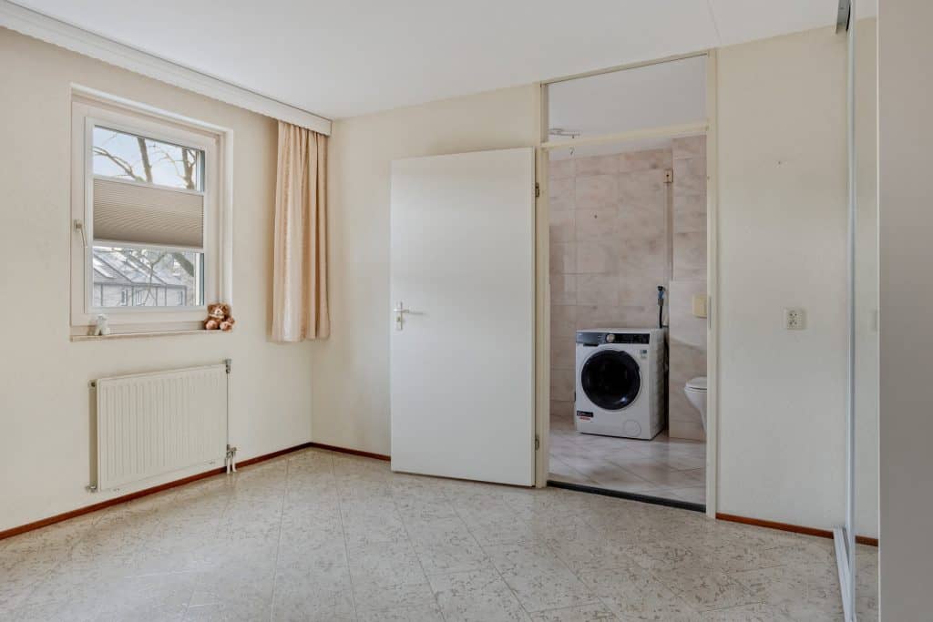 Het appartement beschikt over twee slaapkamers. De eerste slaapkamer is bereikbaar vanuit de woonkamer, is ruim van opzet, voorzien van vaste kastruimte en biedt directe toegang tot de badkamer. De badkamer is ook vanuit de hal bereikbaar en is uitgerust met een douche, wastafel, vrijhangend toilet en aansluitingen voor de wasapparatuur. Aan de andere zijde van de badkamer bevindt zich de tweede slaapkamer, eveneens voorzien van vaste kasten.