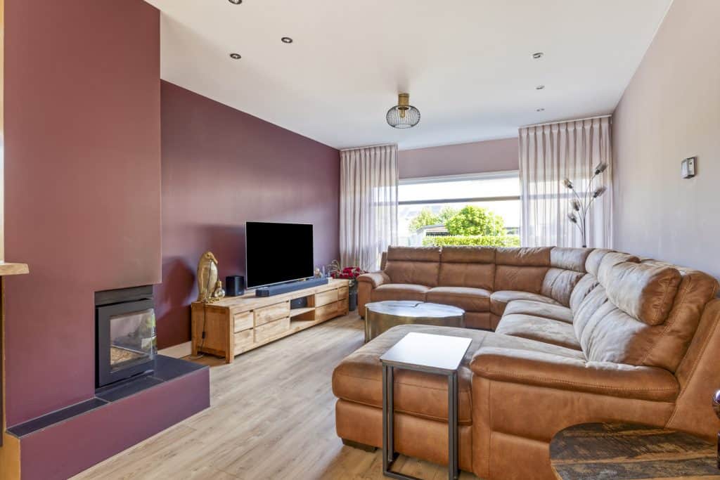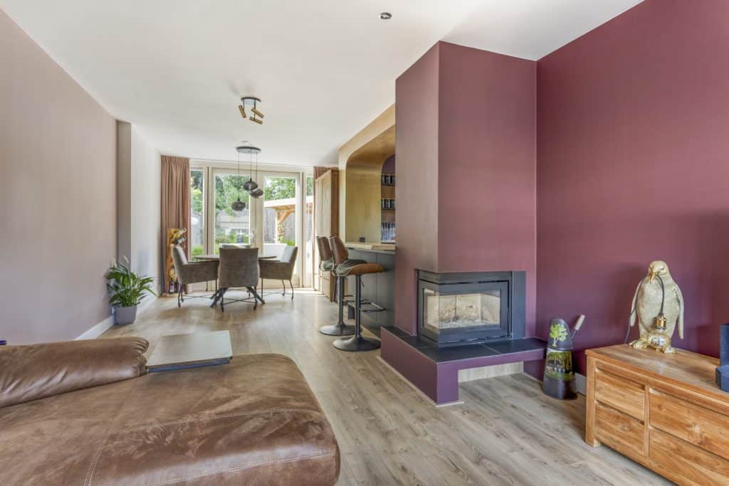 De royale woonkamer is sfeervol ingericht met een recent geplaatste houtkachel en is aan de achterzijde uitgebouwd. Via openslaande deuren bereik je de zonnige tuin. Naast de keuken bevindt zich een praktische bijkeuken.