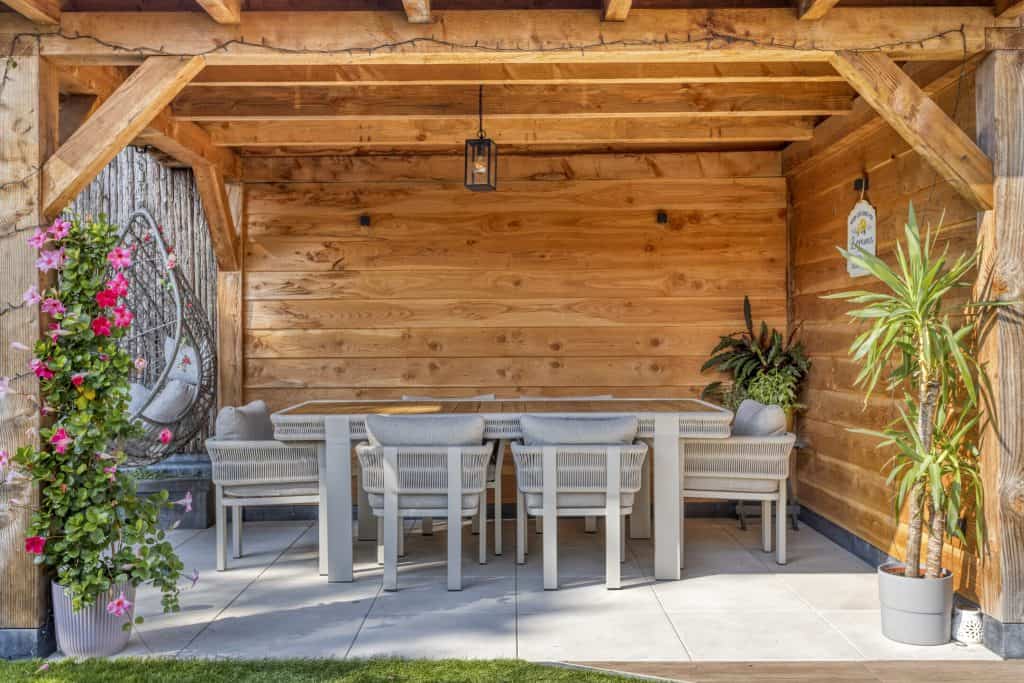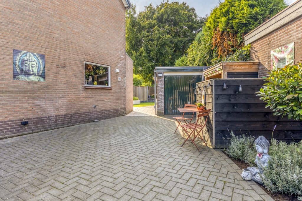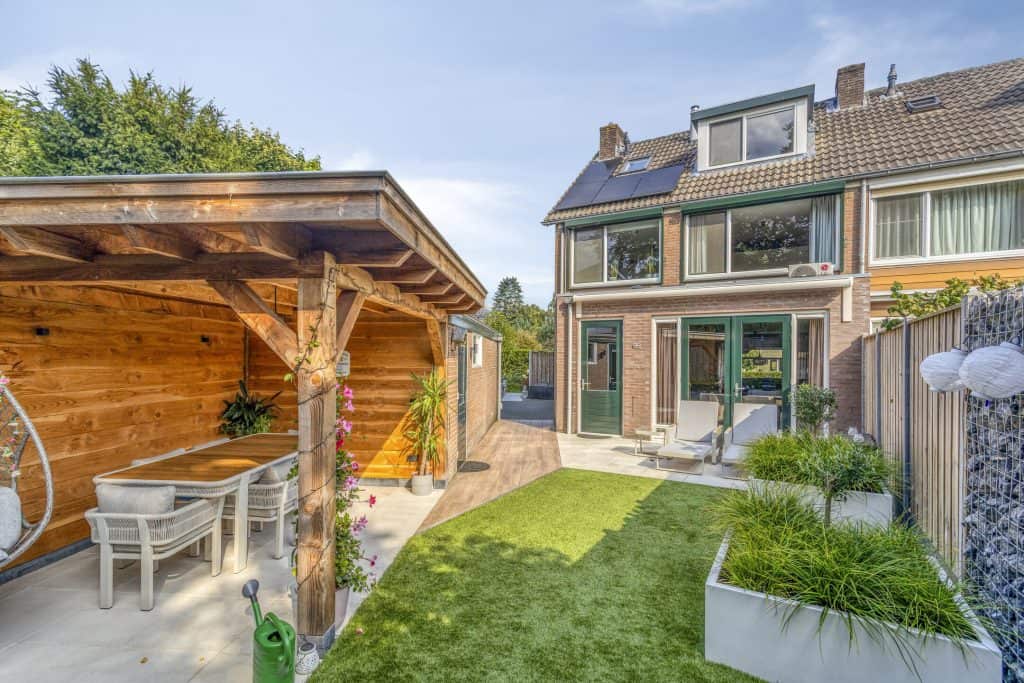 De tuin is recent volledig opnieuw en professioneel aangelegd. Hier is met veel aandacht en kwaliteit gewerkt, waardoor je jarenlang zorgeloos kunt genieten. Achter in de tuin is een fraaie veranda gebouwd waar je heerlijk kunt zitten. Dankzij de ligging op het zuidwesten heb je bovendien de hele dag door zon.