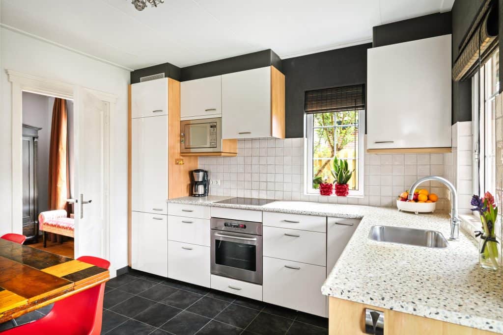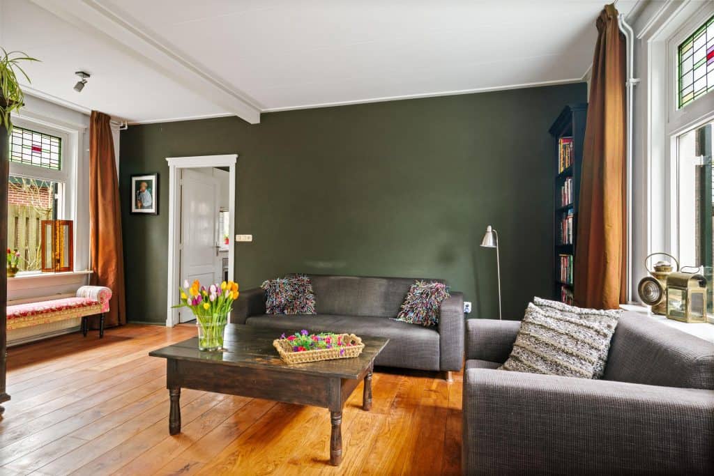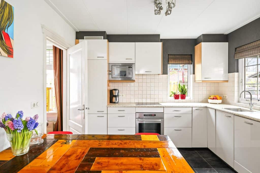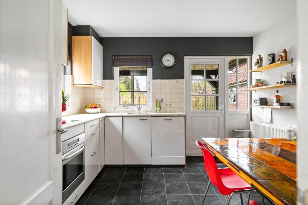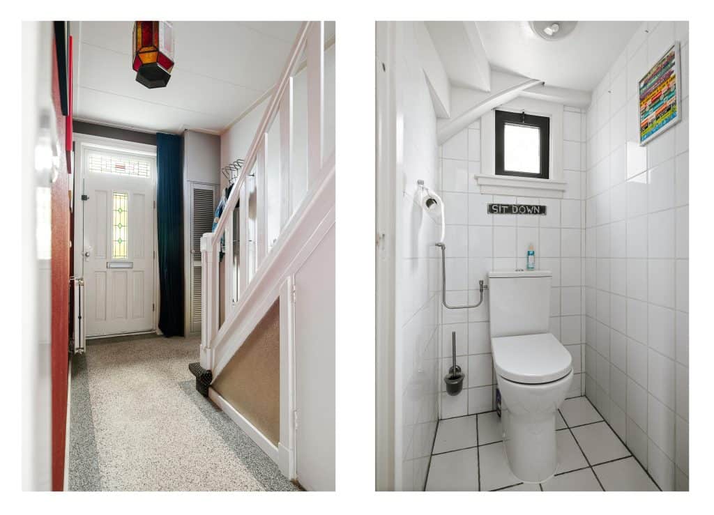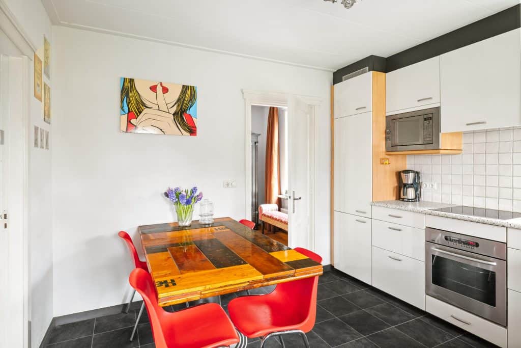 Door de woning heen: bij binnenkomst aan de achterzijde kom je in de ruime keuken. De keuken is in L-vorm opgesteld en voorzien van inbouwapparatuur. Er is voldoende ruimte voor het plaatsen van een eettafel. Vanuit de keuken is er toegang tot de badkamer die uitgevoerd is met een toilet, een douche, een vaste wastafel en hier is ook de wasmachine-aansluiting. We lopen door naar de woonkamer, een sfeervolle ruimte met veel lichtinval en uitzicht op het groen aan de voorzijde van de woning. Authentieke details, zoals glas-in-lood ramen, paneeldeuren en de granitovloer in de hal dragen bij aan de karakteristieke uitstraling van het geheel. In de hal vinden we verder het toilet, de kelder en de meterkast.