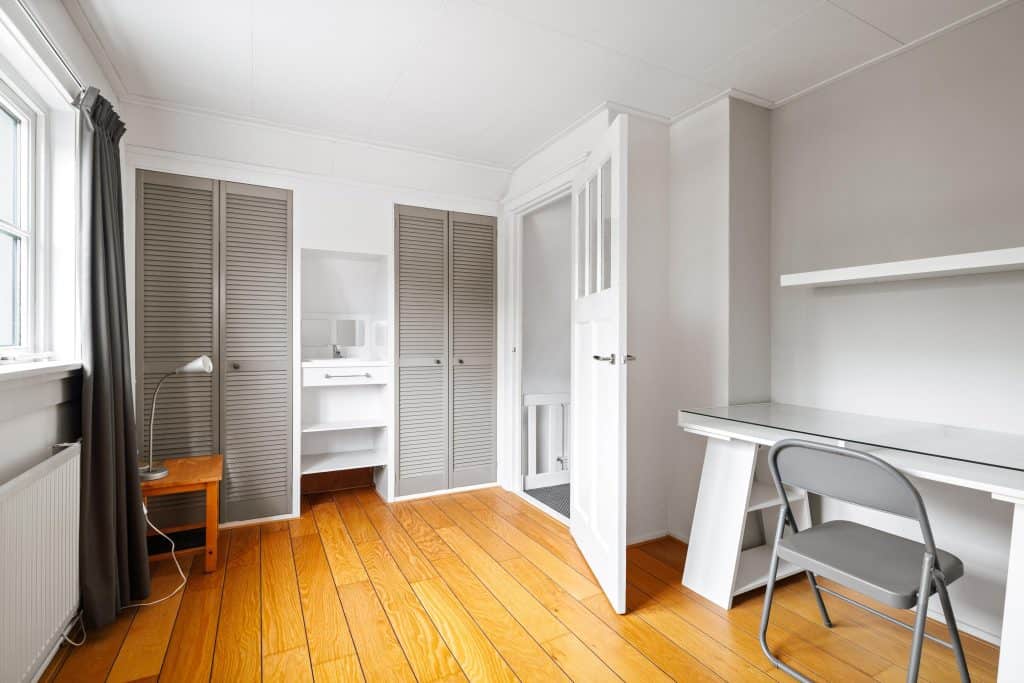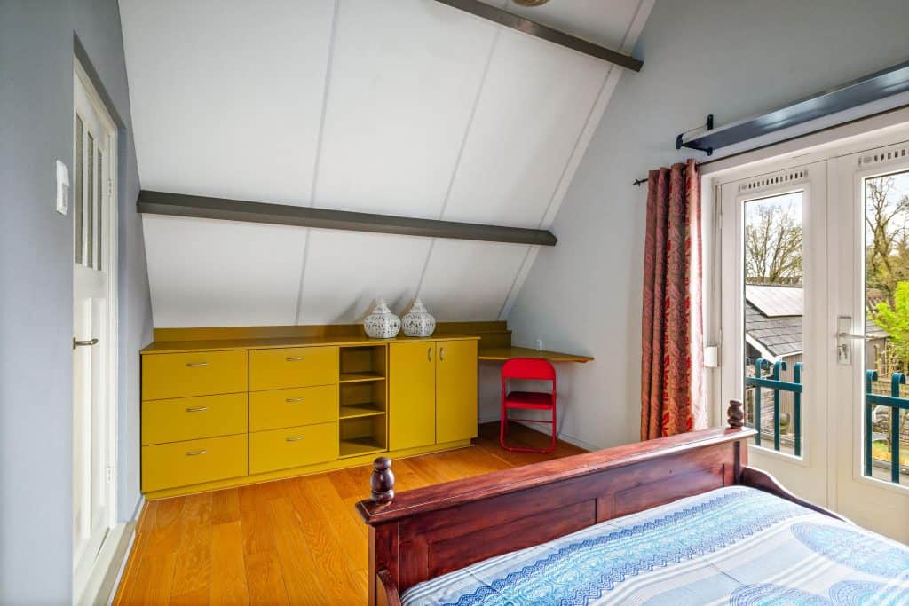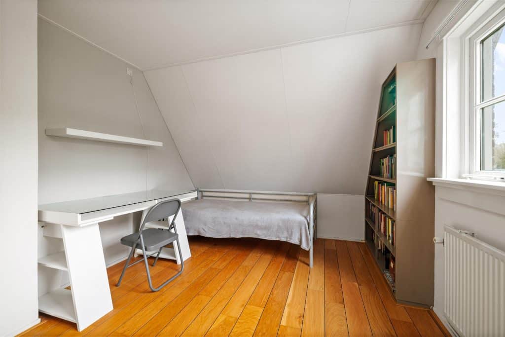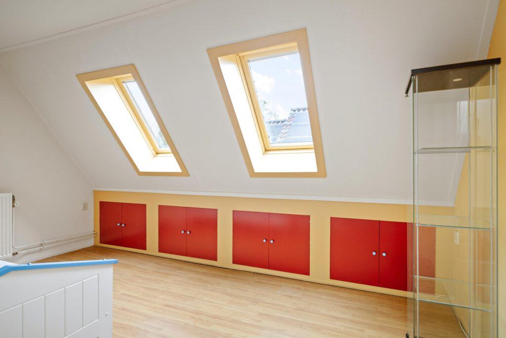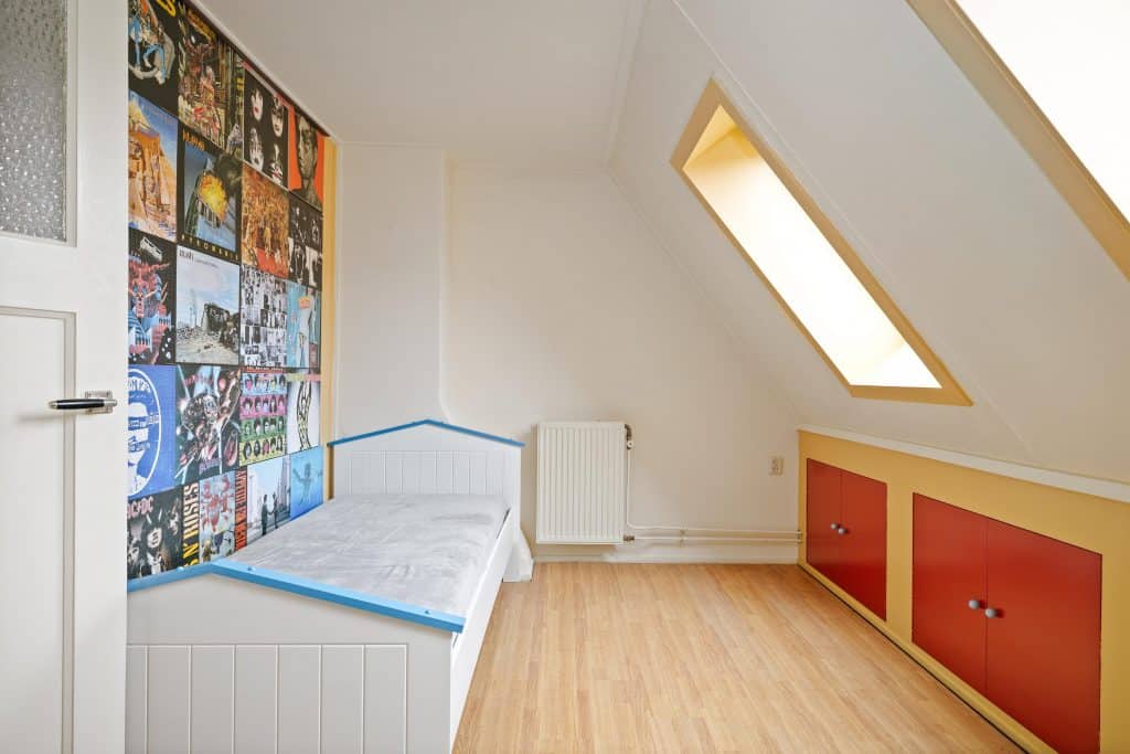 Op de verdieping is de woning verrassend ruim. Dankzij de uitbouw is hier een extra kamer gerealiseerd. In totaal zijn er drie slaapkamers en een overloop/doorloopkamer met bergruimte.