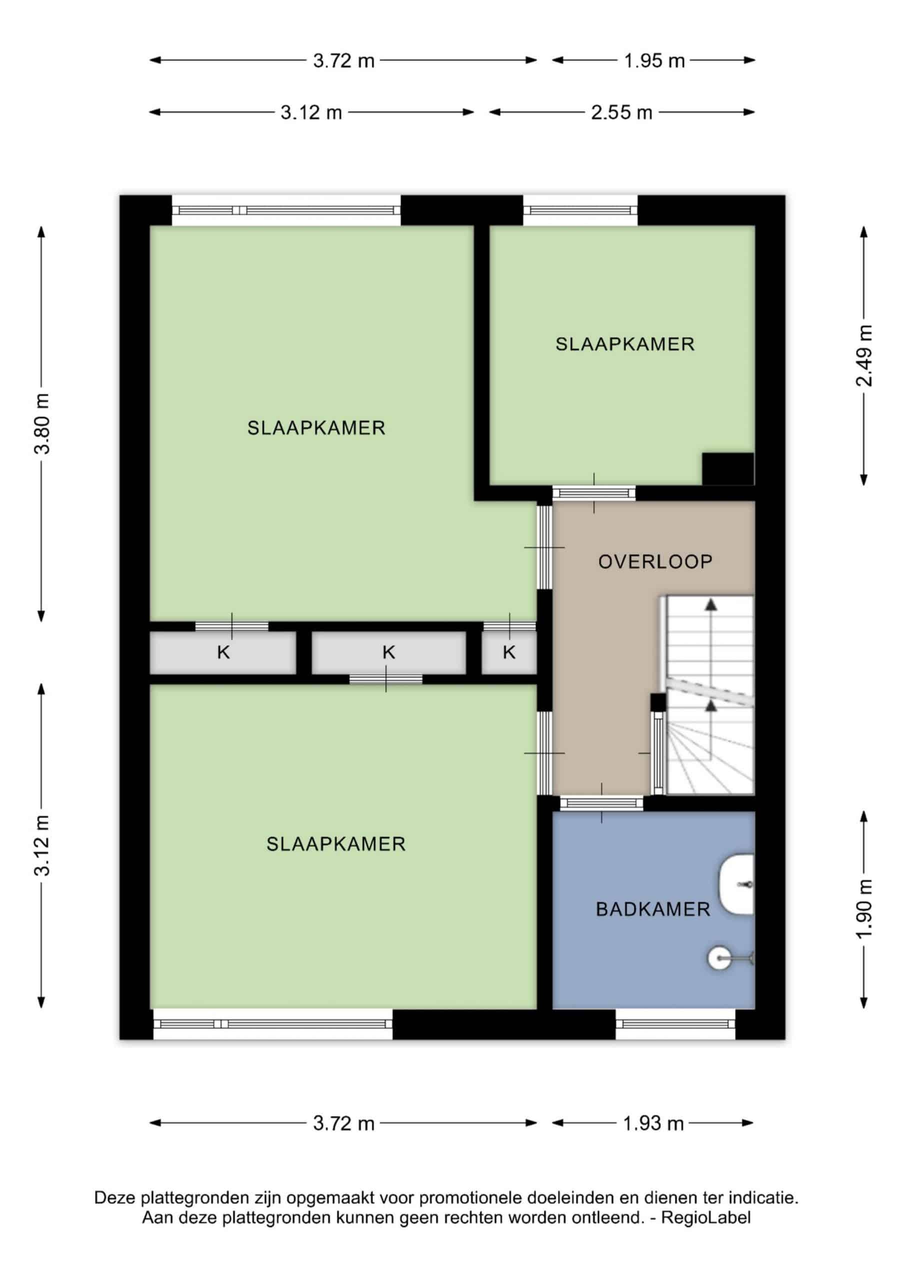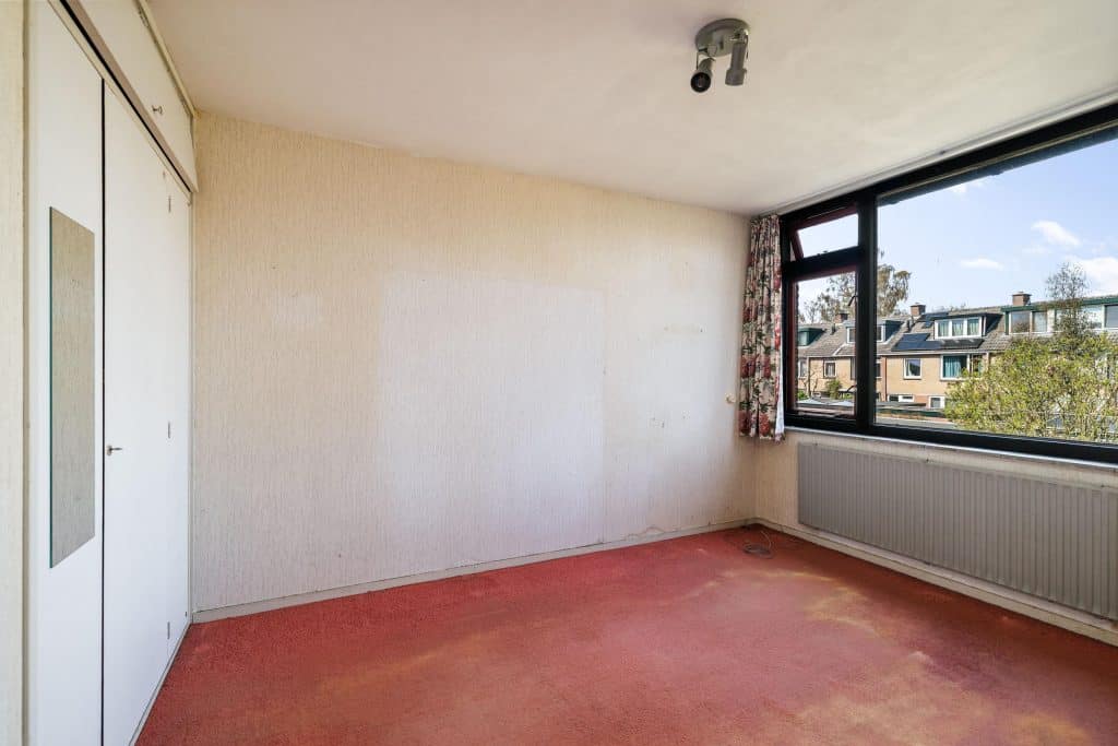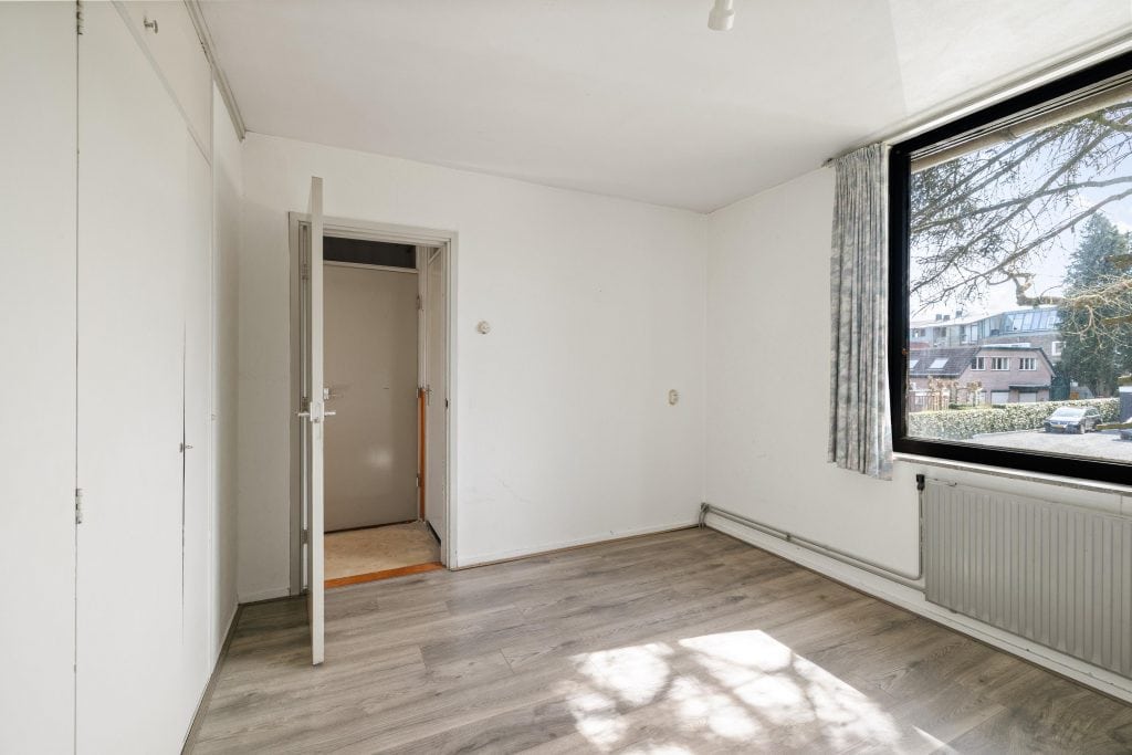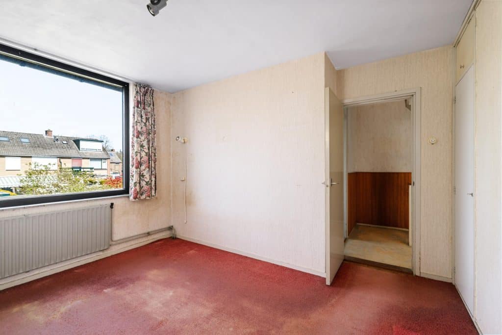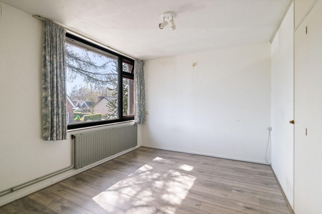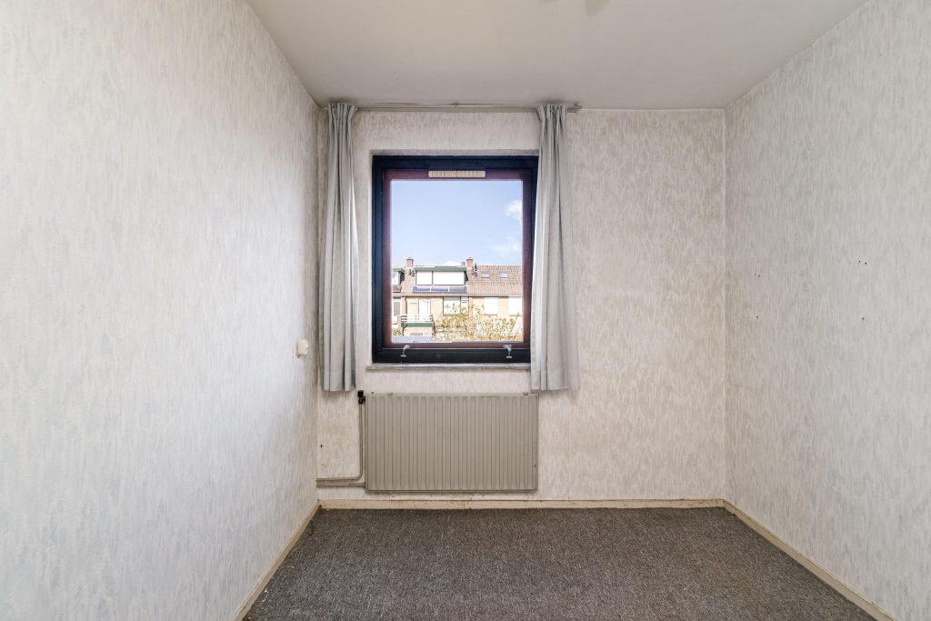 Op de eerste verdieping bevinden zich drie slaapkamers, allen van goed formaat. Twee kamers zijn royaal en beschikken over vaste kastruimte. Vanuit de achterste slaapkamer heb je een prettig uitzicht over de tuin. De badkamer is gedateerd, maar biedt qua oppervlakte een goede basis voor modernisering.
